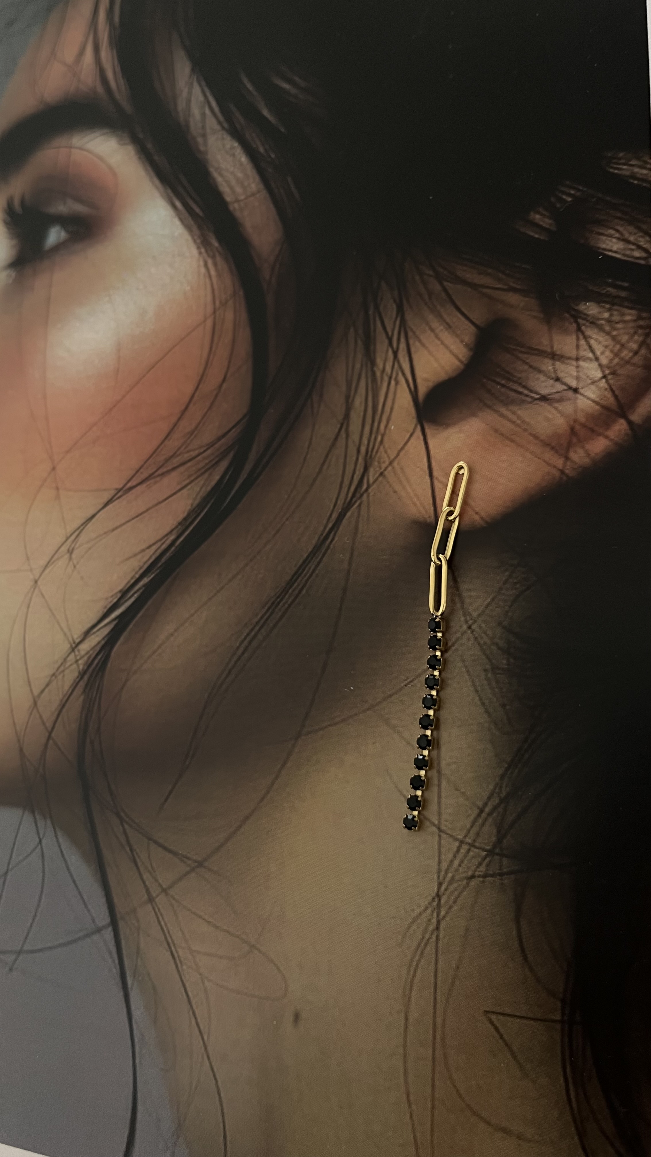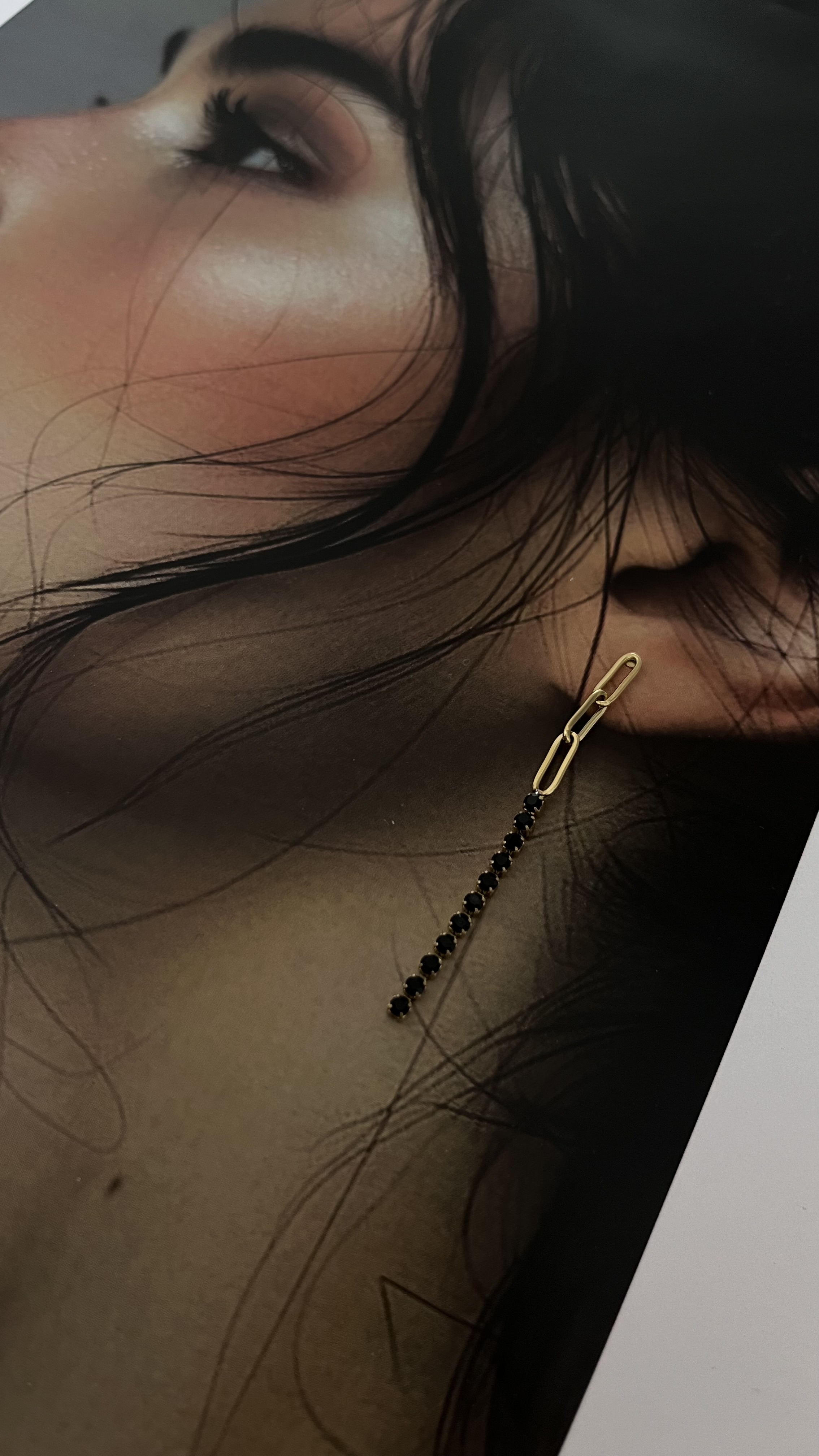 گوشواره زنانه کارتیر روکش طلا نگین مشکی