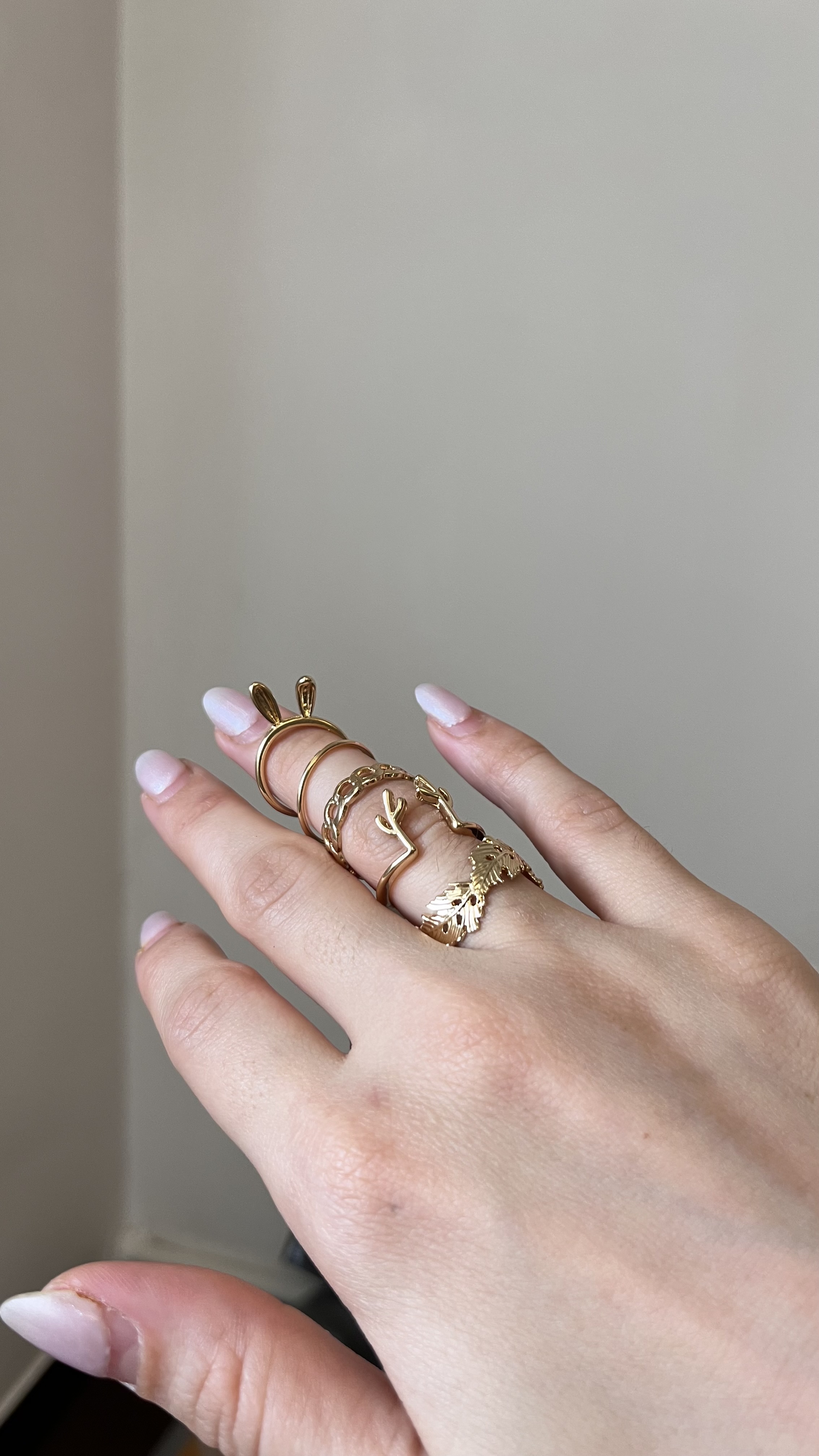 پک انگشتر دخترانه طلایی ۵ تایی ( مدل خرگوش، گوزن، کارتیر و برگ)
